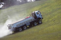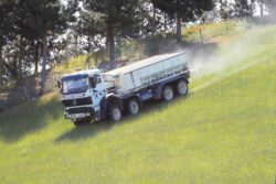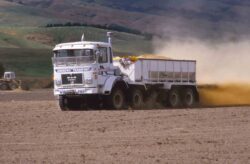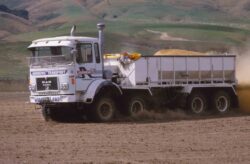 Fred Andrews of Riversdale in Southland was a great one for experimentation, and become renown for his work with 8×8 MAN and Mercedes-Benz spreaders.